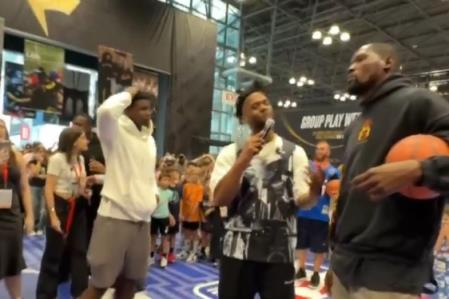 08月18日讯 爱德华兹和杜兰特近日一起参加了NBA官方和Fanatics联合举办的球迷活动。