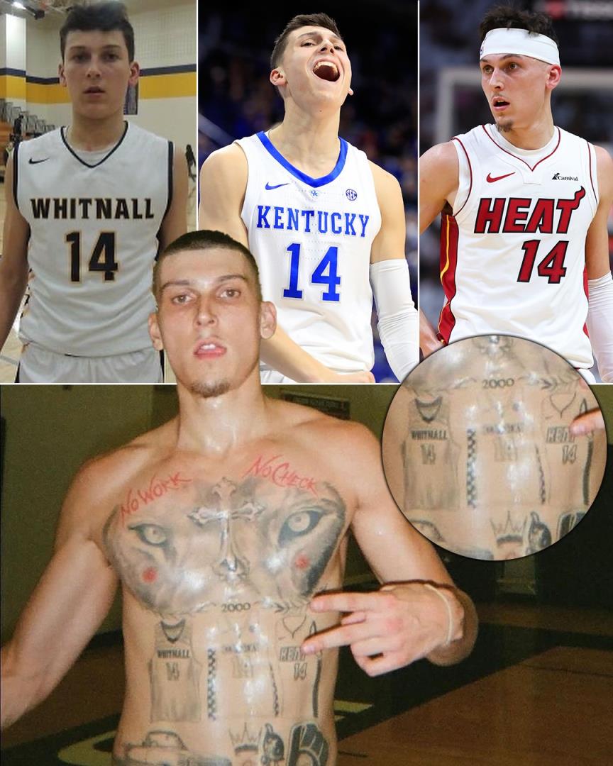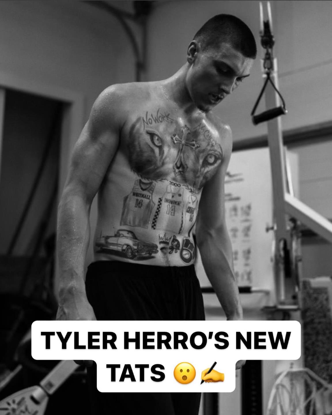 从图中可以看到,希罗把自己高中、大学、热火的球衣都文在了身上。