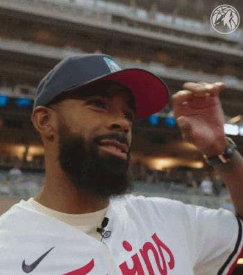 森林狼老将康利身穿同城棒球队、明尼苏达双城队的球衣,来到现场开球。